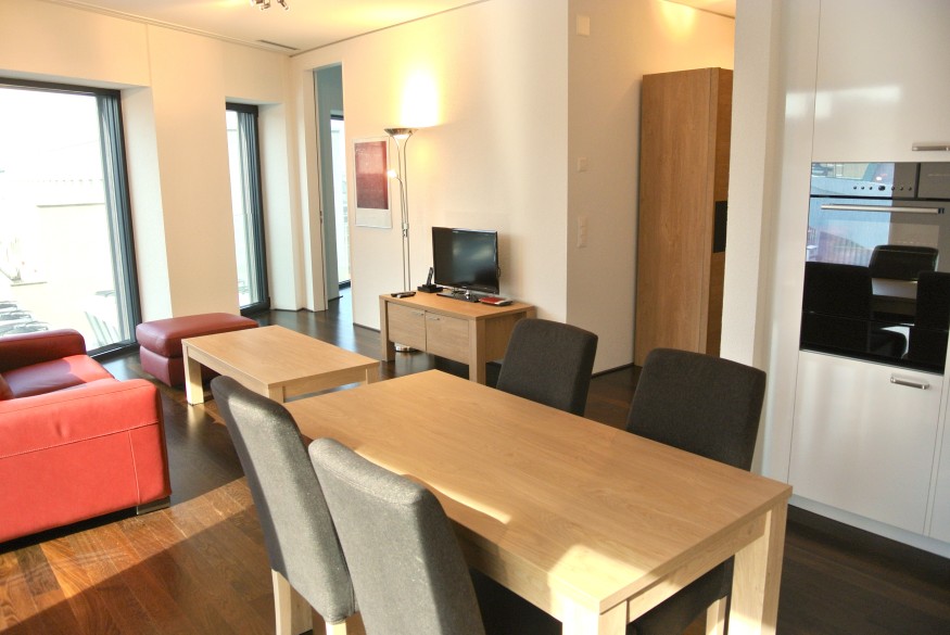 The Markthalle was constructed in 1929. Until as recent as 2004, the dome was used as a market place for merchants exchanging their goods for a living. This cultural and historical land mark of the City of Basel is an attraction per se and has lived the history of Basel. Between 2009 and 2012, the dome was completely renovated and a modern 12 story building added, creating a spectacular location for urban living. The apartment includes a generous lounge and dining space, a nicely sized kitchen to create fabulous meals for friends and family and spacious child or guest bedroom and finally a warm and inviting bedroom, comfortably furnished facing away from any noise a road could produce, ensuring a quiet rest and optimal ambience for a perfect regeneration. The apartment also includes a washer/dryer, an en-suite bathroom as well as a separate guest toilet and shower room. Markthalle is the most central location to set-up your tent, offering a hand full of positive aspects to simply enjoy.
